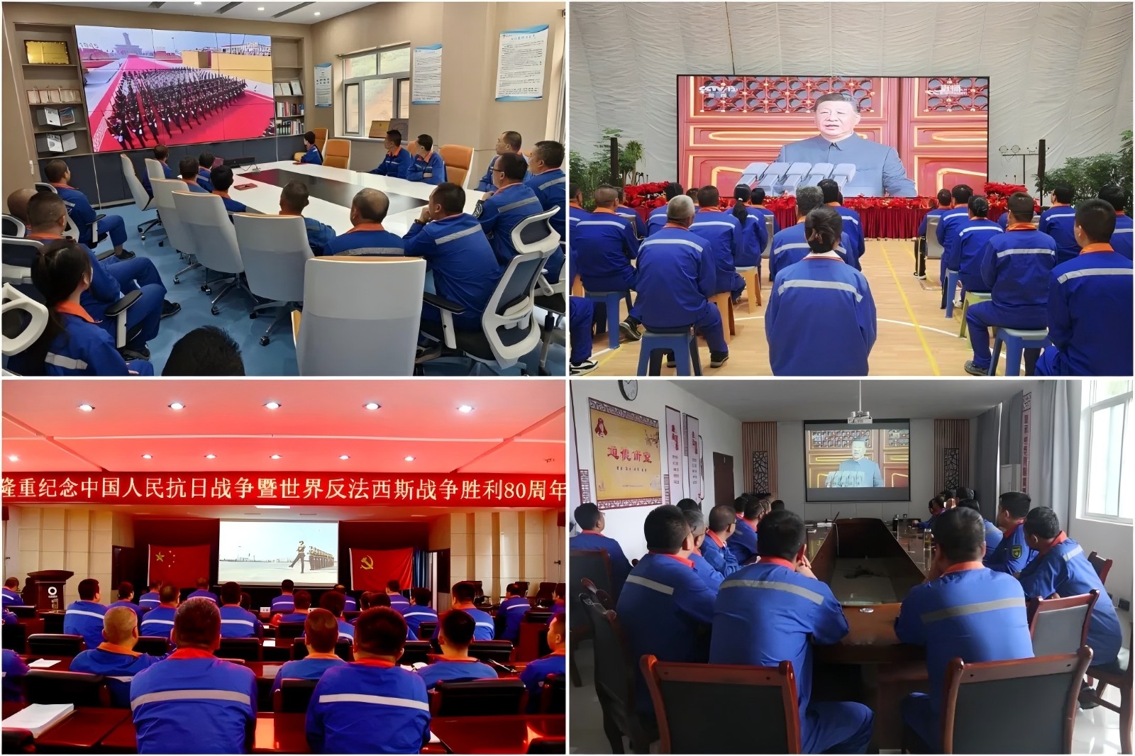 祁連山水泥組織觀看紀念中國人民抗日戰(zhàn)爭暨世界反法西斯戰(zhàn)爭勝利80周年大會直播